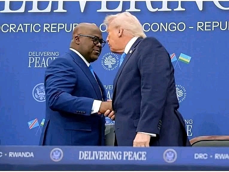 « Nous avons signé un accord de paix historique entre la République démocratique du Congo et le Rwanda, qui offre pour la première fois une voie vers la paix pour mettre fin à un conflit incroyablement violent de trente ans. Et nous sommes rejoints aujourd’hui par un homme très courageux et merveilleux, le président du Congo, président, voudriez-vous vous lever, s’il vous plaît ? Vous êtes un vrai président, merci. Et oui, vous l’êtes vraiment, vous êtes un homme courageux. Je sais ce que vous avez traversé, je le connais très bien, c’était difficile, c’était de nombreuses années, et ça se passe bien, rien n’est facile, il faut les rappeler tous les deux, mais ça se passe bien, ça va bien se passer. Ensemble, lui et moi avons également signé le plus grand accord minier de l’histoire des États-Unis et de l’Afrique. Et vous savez, le Congo a une terre magnifique, c’est incroyable, et il s’en sort très bien. Nous apprécions cela. Nous avons signé le plus grand accord avec certaines de nos grandes entreprises, et elles s’y installent, donc merci beaucoup, monsieur le président. Et n’hésitez pas à m’appeler pour quoi que ce soit, d’accord ? », a indiqué le président américain Donald Trump